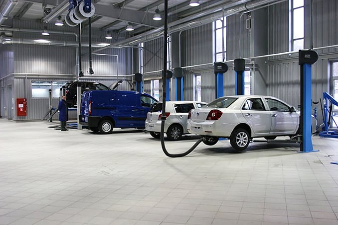 В автомастерских, где производственные цеха занимают большие площади, нужно обустраивать принудительную приточно-вытяжную вентиляционную систему, с местными отсосами воздуха, идущими от выхлопных труб.