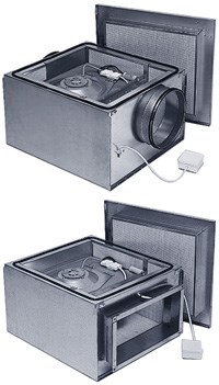 Все канальные вентиляторы IRE оснащены асинхронным двигателем с внешним ротором и уплотнёнными подшипниками, что увеличивает срок их службы. Корпус изготавливается из оцинкованной стали. Двигатель и рабочее колесо вентиляторов расположены на откидывающейся пластине, что делает доступ к ним лёгким, быстрым и удобным. Вентиляторы имеют внутренний 50 мм слой изоляции из минеральной ваты, покрытой грубой шерстяной тканью, что обеспечивает низкие шумовые характеристики.