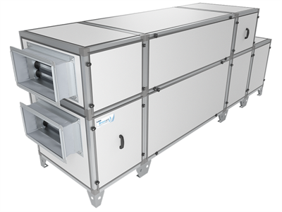 Напольная приточно-вытяжная установка с противоточным пластинчатым рекуператором (с системой защиты от замерзания, эффективная работа до -35°С) и электрическим нагревателем, комплектуется воздушными клапанами с электроприводом, системой цифровой автоматики JetLogic с цветным сенсорным пультом управления и всеми необходимыми датчиками.