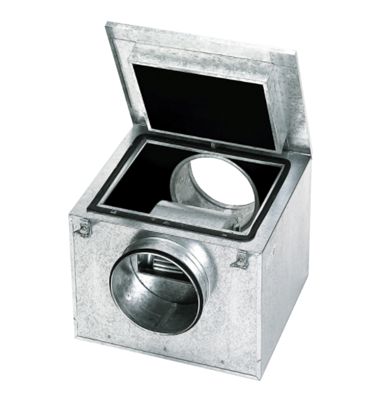 Вентиляторы в шумоизолированном корпусе из оцинкованной листовой стали с теплозвукоизоляцией из негорючего стекловолокна (МО) толщиной 50 мм. Крышка вентилятора крепится при помощи специальных защелок, которые обеспечивают плотное прилегание крышки к корпусу вентилятора. Вентиляторы комплектуются центробежными рабочими колесами с загнутыми вперед лопатками.