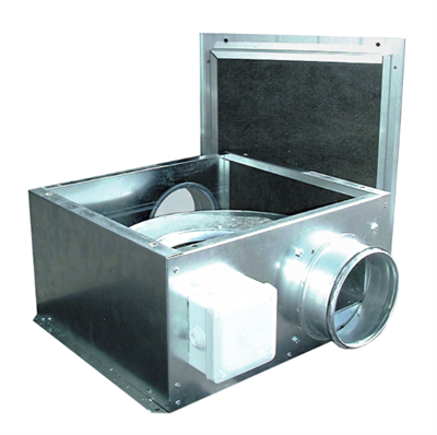 Вентиляторы в шумоизолированном корпусе из оцинкованной листовой стали с теплозвукоизоляцией из негорючего стекловолокна (МО) толщиной 50 мм. Крышка вентилятора крепится при помощи специальных защелок, которые обеспечивают плотное прилегание крышки к корпусу вентилятора. Вентиляторы комплектуются центробежными рабочими колесами с загнутыми вперед лопатками.